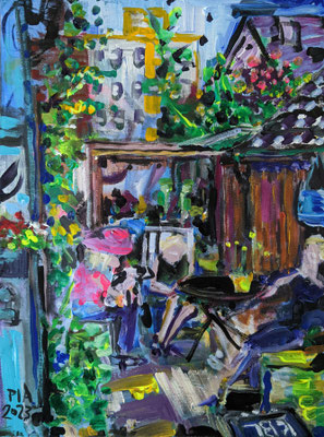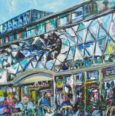 My friends and some strangers painted with a loose expressive brushstroke. The interiors painted are often iconic locations in and around Frankfurt. Enjoying the everyday, focusing on the atmosphere, capturing a slice of humanity.