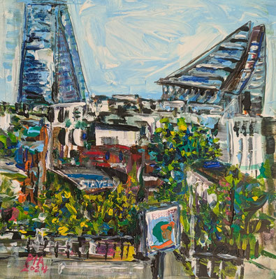 I am attempting to capture the city I live in. A mix of old and new, and a splash of abstraction. Not sure where this journey will take me but I am enjoying the process, especially becoming more aware of the world around me.