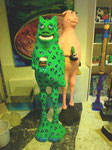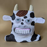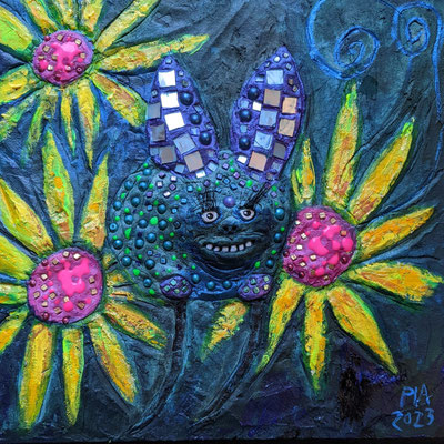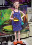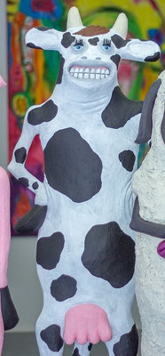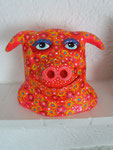 I work with cement and high quality acrylics. The surface is not completely smooth and there can be imperfections, just like in the real world. But the hope is that their presence can bring a smile to anyone entering the room. Can also live outdoors, hairline cracks are normal.